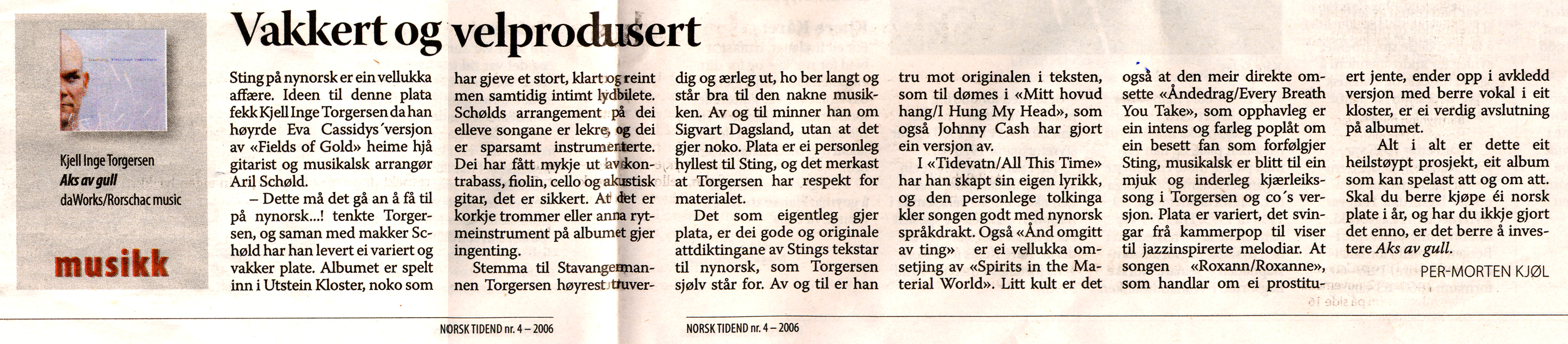 Aks av gull (Fields of Gold) blei utgjeve i 2006 og inneheld 11 gjendiktingar av artisten Stings songar til nynorsk i ny musikalsk drakt. Her finn du fleire tekstar.